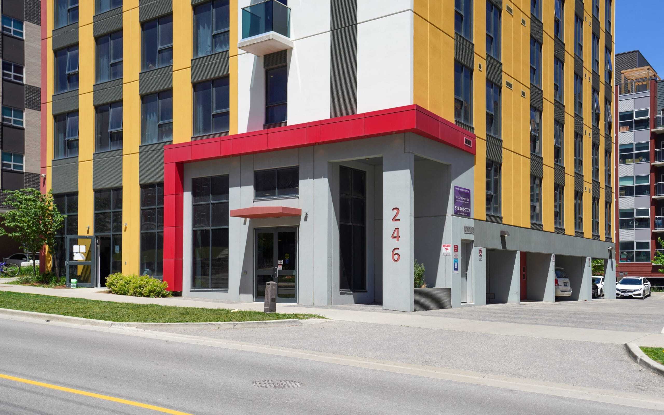 This bold and vibrant property is designed to offer residents the best living experience in comfort and luxury. In the heart of Waterloo’s University District, 246 Albert Street is the perfect living opportunity just steps away from all the action that University Avenue West has to offer including cultured cuisine, parks, and a variety of shopping. This contemporary property also features an interlocking panel system that provides privacy and safety for residents.