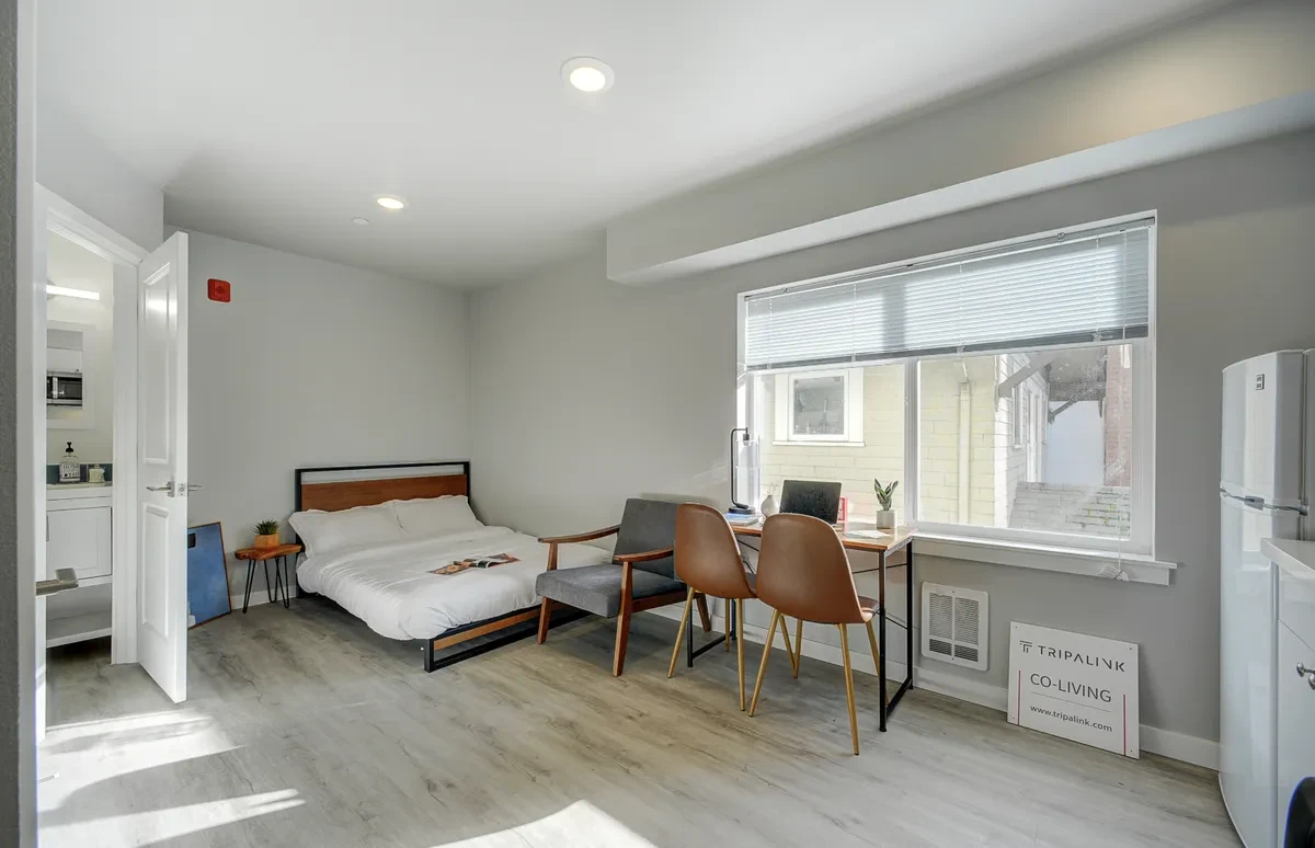 Each unit comes fully furnished with a full-size bed frame and mattress, a study table, a nightstand, a sofa chair, and two additional chairs, ensuring you have everything you need to feel at home.