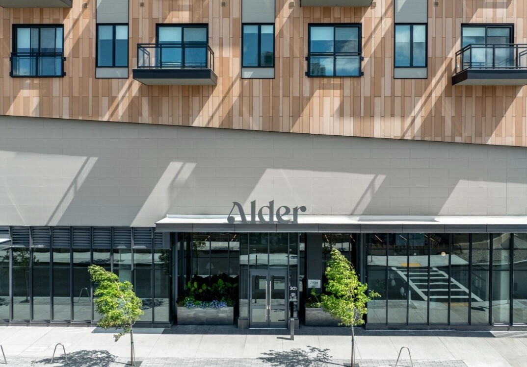 Browse Alder at Allston Yards photos. The interior is designed with a warm modern style. Every room has oversized windows. The windows bring in natural light and also offer views of the Boston skyline or Allston streets. The kitchen is open-plan. It features two-tone cabinets and quartz countertops. The kitchen works well for daily cooking and small gatherings. Each unit at Alder at Allston Yards includes an in-unit washer and dryer. This reduces the need for shared laundry rooms. The building also offers Latch smart locks and Ecobee smart thermostats, which can controlled by phone.