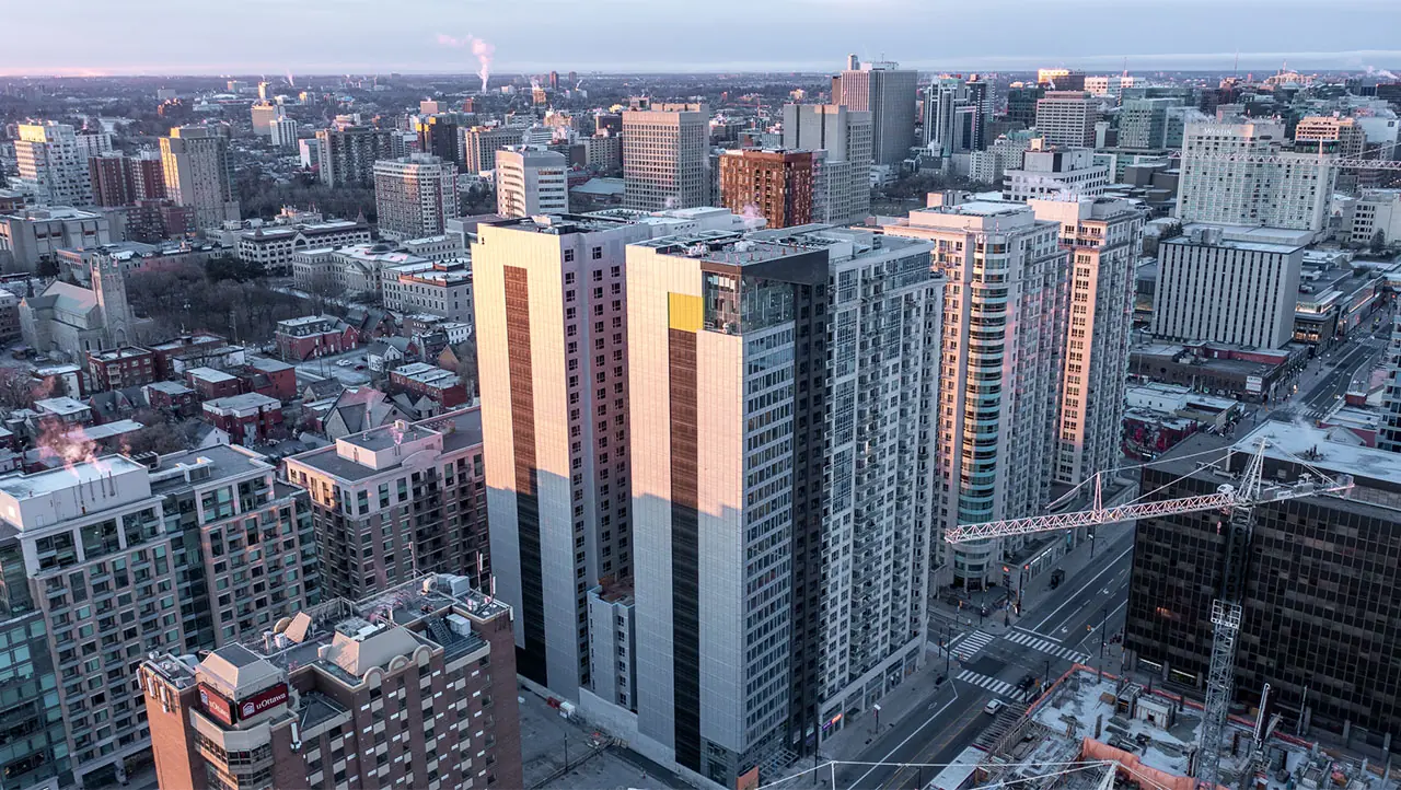 Alma Byward Market Ottawa offers prime student apartments in Ottawa at 256 Rideau St, Ottawa, Ontario K1N 5Y3. University of Ottawa is an 8-minutes walk from the apartment and a 13-minute drive to Carleton University. The fully furnished student apartment provides studios and single rooms in a shared flat for you to choose from and live in the unit with high-speed Wi-Fi.