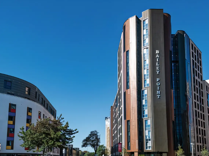 Bailey Point is a modern student accommodation in Bournemouth with 550 bedrooms. It is privately rented and exclusively available to first-year undergraduate and postgraduate students studying at Bournemouth University. The student accommodation is conveniently located, with Bournemouth University's Lansdowne Campus just a short walk away. For students attending the Talbot Campus, a quick 10-minute bus ride will get them there.