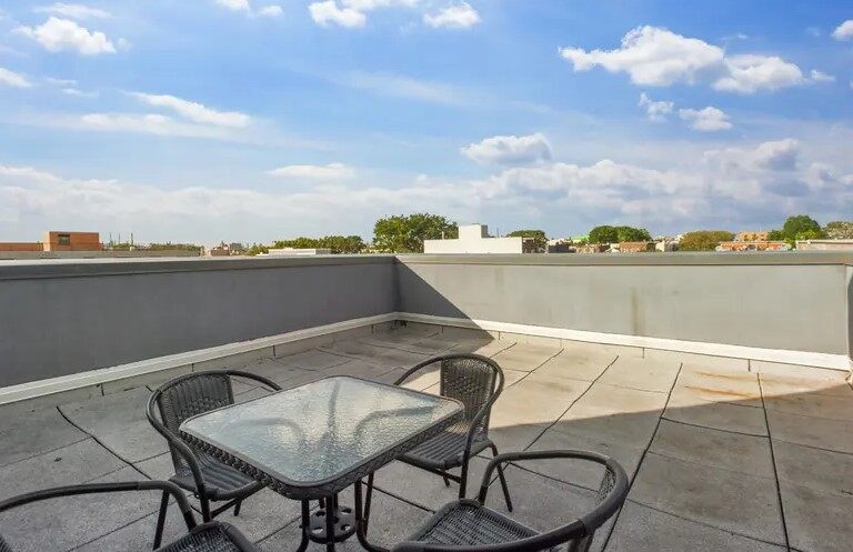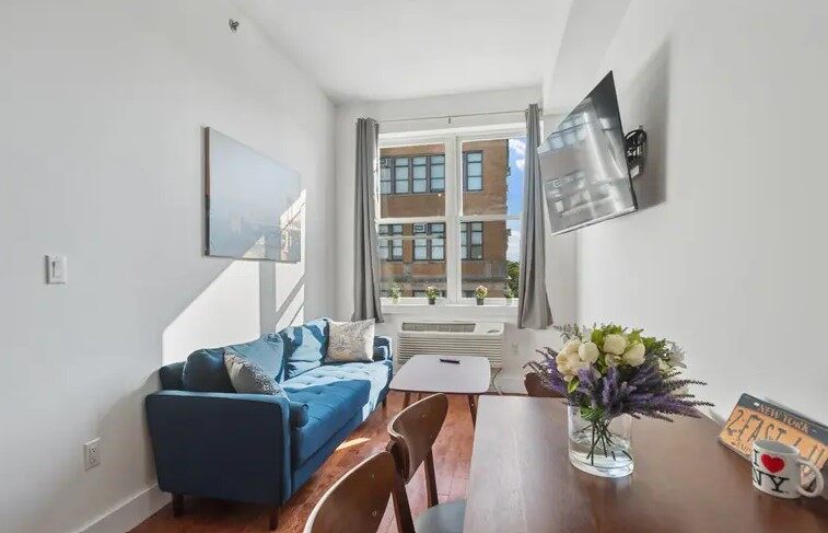 Bushwick Terrace Home, situated in the dynamic Bushwick neighborhood of Brooklyn, offers modern apartments for rent in New York, including single rooms for those who prefer to live alone or shared rooms for those who enjoy the company of friends. The rooms with well-furnished with high-speed Wi-Fi ensures seamless connectivity, while a full-screen TV provides ample entertainment options. The kitchen at Bushwick Terrace Home NYC is equipped with stainless steel appliances, including a fridge, microwave, oven, and dishwasher, complemented by cookware and a coffee machine for all your culinary needs. The in-unit washer and dryer add to the convenience, allowing for easy laundry management. The bedroom features a queen-size bed with a comfortable mattress, a spacious wardrobe, and a bedside table with a lamp for reading and study. Additional furniture includes an ironing board and iron, a desk and chair for work, and a square dining table with chairs for meals. The living area has a cosy sofa and cabinetry for extra storage. The bathroom in Bushwick Terrace Home New York is modern and well-maintained, featuring a shower, toilet, wash basin, towel rack, and a mirror. Rent at Bushwick Terrace Home includes all expenses, covering bills for electricity, water, high-speed Wi-Fi, and cleaning services, offering a hassle-free living experience.