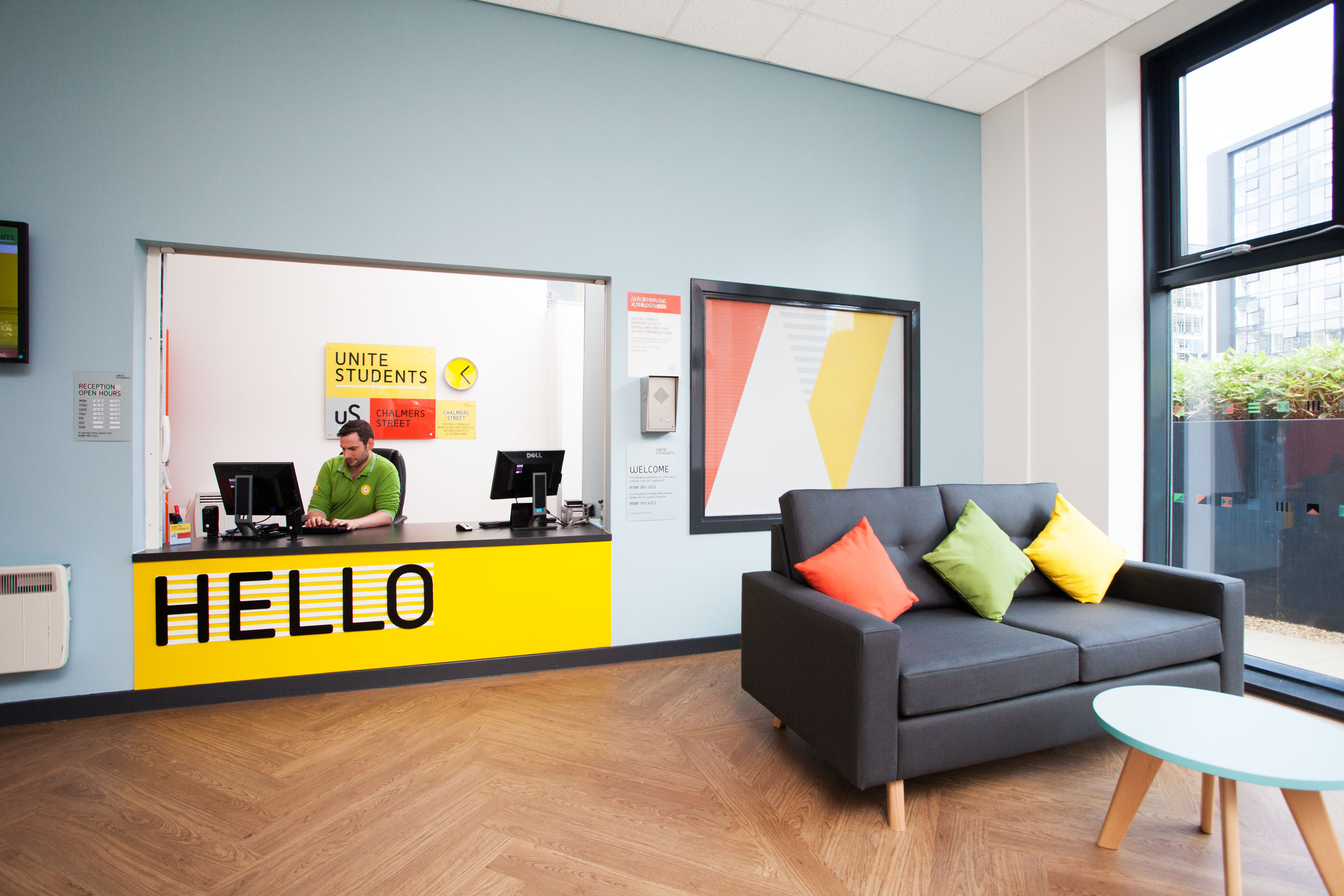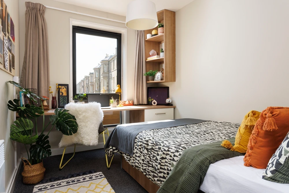 Chalmers Street Unite Students is a specially designed accommodation for students and has 251 beds, including shared ensuites and private studios. The flats are fully furnished and equipped with desks, chairs, bedside tables, bookcases, wardrobes, bulletin boards, etc. There is also storage under the beds, so the rooms have plenty of space. The kitchen has a refrigerator, oven, microwave, Hoover, and more.