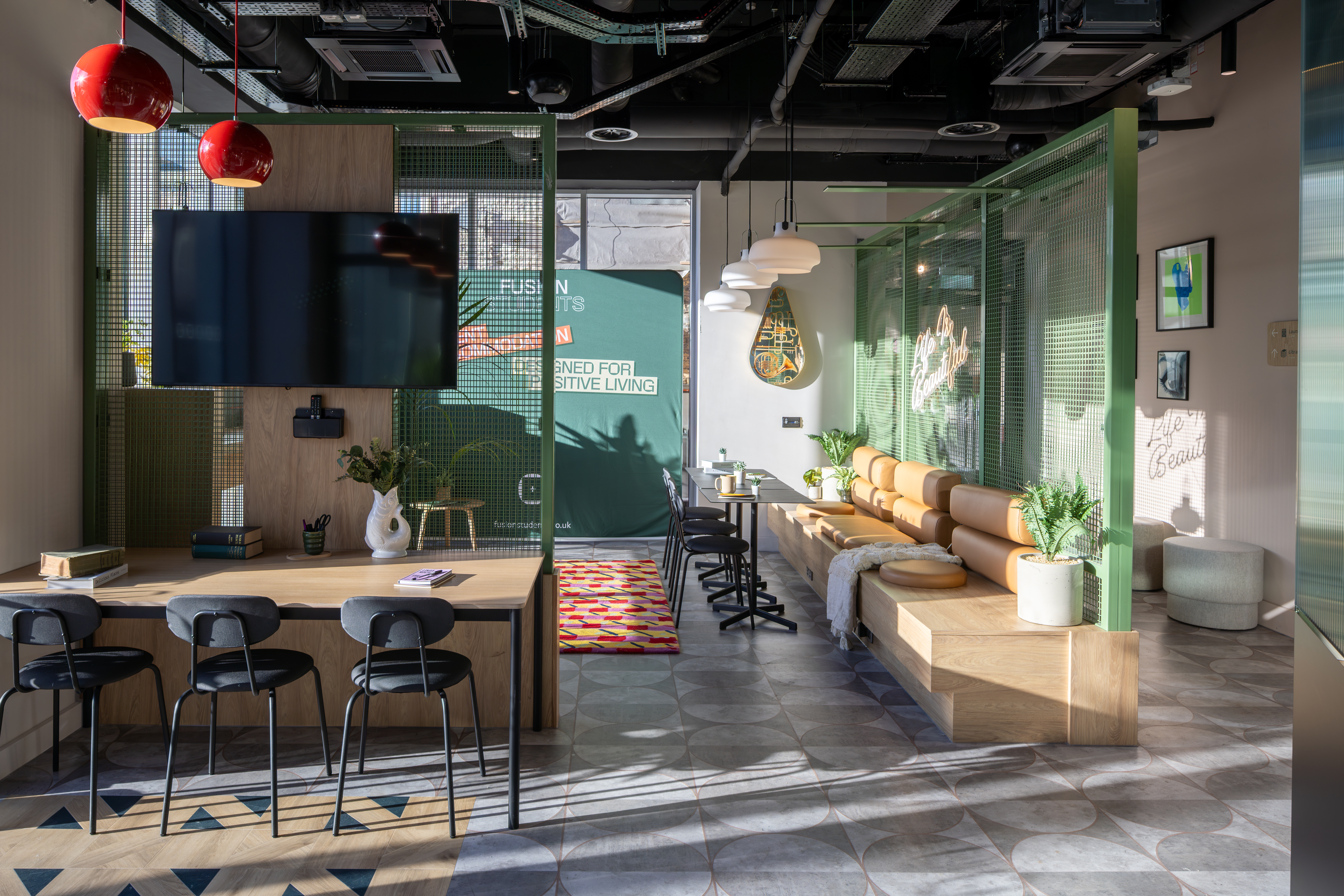 Fusion Liverpool Accommodation is equipped with high-end community amenities, striking a balance between students' entertainment and study needs. You can visit areas such as the basketball court, gym, game area, and karaoke room in your spare time to fully relax your body and mind while exercising. Coffee lounge, library, private dining room, and outdoor courtyards can enhance your quality of life. To support students' well-being, Fusion Students Liverpool offers free laundry and housekeeping services, ensuring the cleanliness and tidiness of the premises. The condo also organises various activities regularly to help students integrate into apartment life naturally. Parcel Collection & Concierge enables you to store your packages with peace of mind.