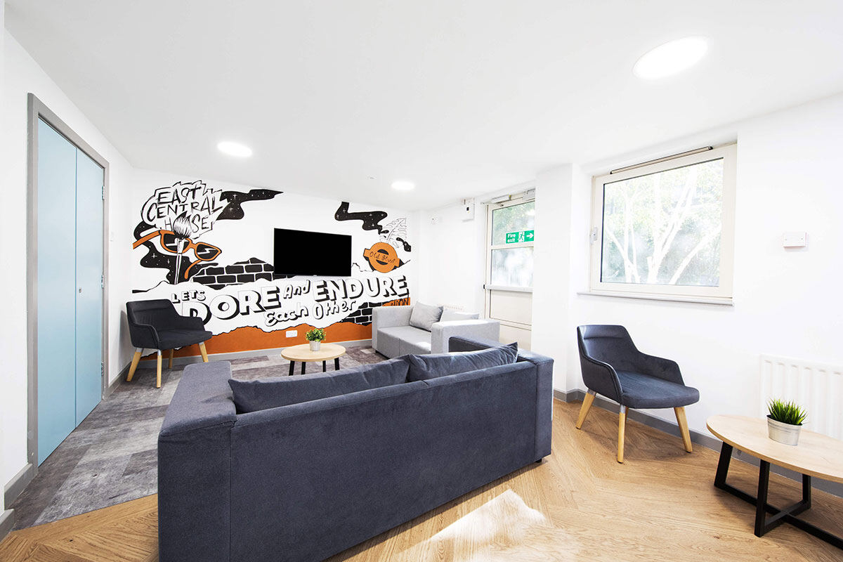 Every one of the 245 bedrooms at East Central House comes with a private bathroom, study space, super-fast WiFi, and lots of storage. Choose an en-suite room to share your kitchen and lounge with flatmates. If you’d prefer an individual flat with your own kitchen and bathroom, choose a studio.