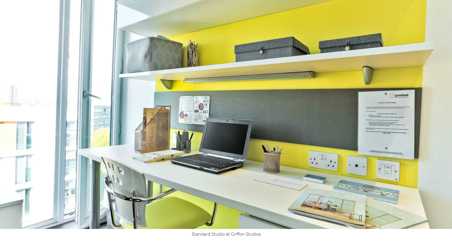 Homes for Students Griffon Studios offers 566 private studio apartments designed for postgraduate living. The studio types include standard, premium, large standard, and deluxe. Prices vary by studio type, with standard studios generally more affordable, while deluxe and large standard studios are the premium option. Each studio includes an en-suite bathroom, kitchenette, and purpose-built study area, giving students a private and independent living space. The accommodation also includes all-inclusive utility bills, free Wi-Fi and broadband, individually controlled heating and air conditioning, soundproofing, and keyless entry for added comfort and convenience.
