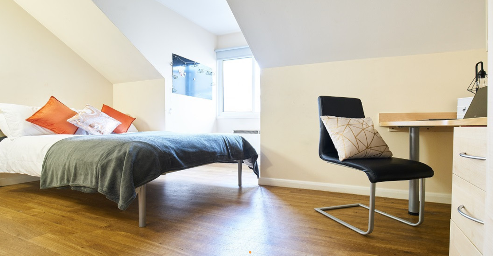 Heald Court offers 122 en-suite rooms, which offer durable furnishings and domestic appliances such as tables and chairs, double beds, wardrobes, and bookshelves. Your room is also equipped with a modern shower for your privacy. In addition, all rooms offer fast Wi-Fi, so you can explore the online world whenever you want. The living room and kitchen in Homes for Students Heald Court are shared with roommates, offering a sofa, TV, cooker, and oven, allowing students to enjoy their downtime in that space.