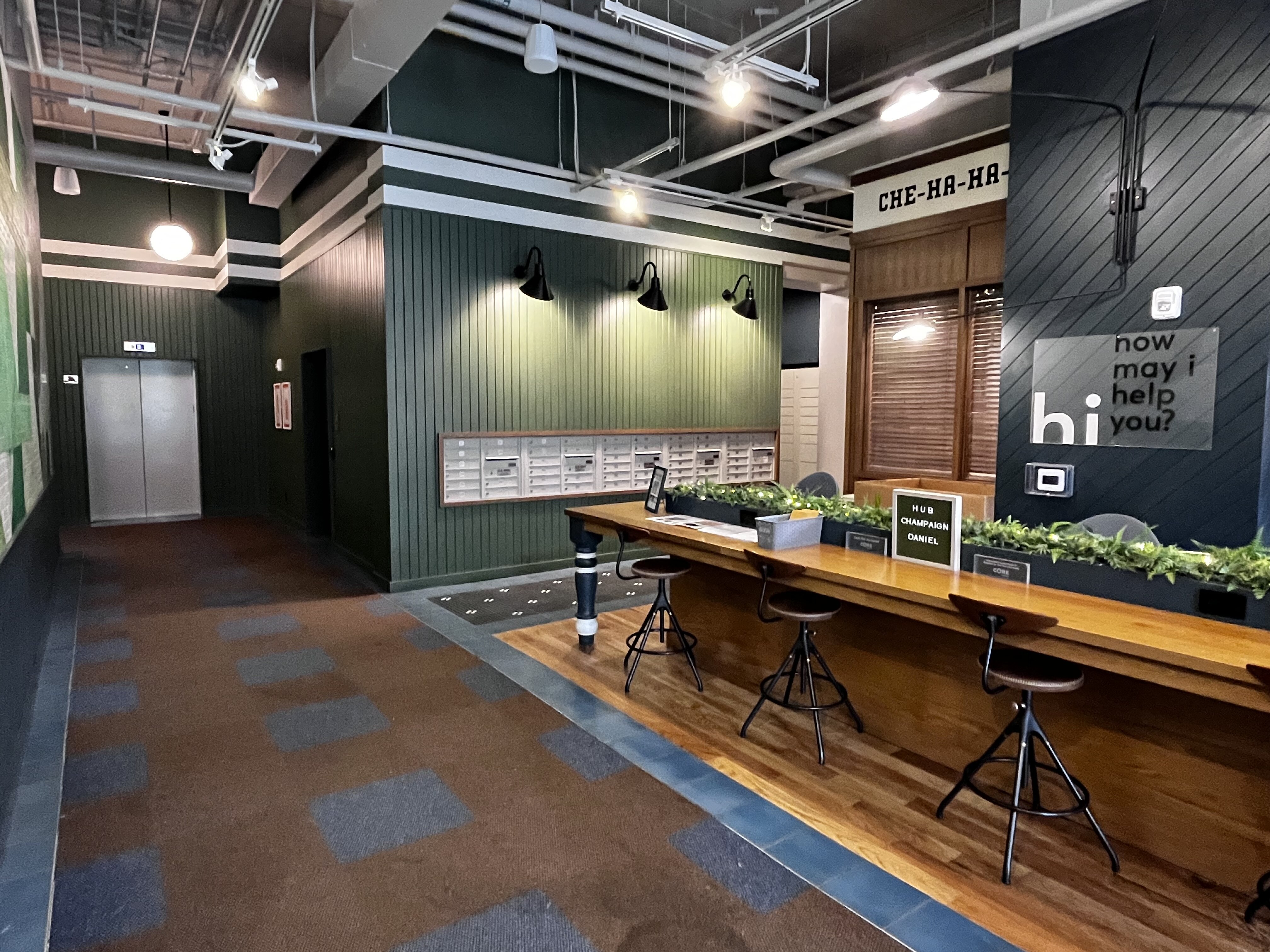 Need to hustle at Hub Champaign Daniel? The 24/7 coworking lounge fuels productivity with free coffee, private meeting nooks, and a tech hub stocked with Macs and printers—all hooked up to high-speed Wi-Fi.
