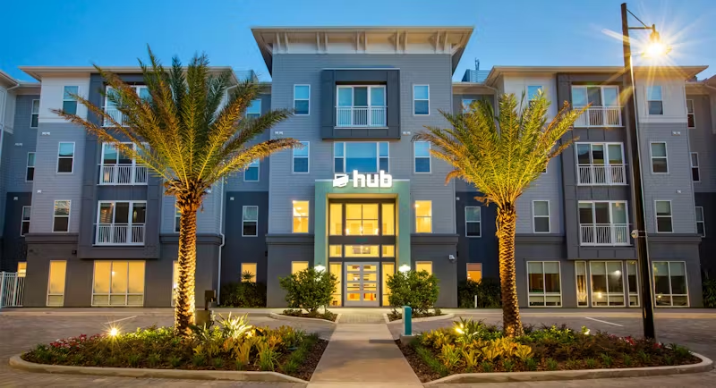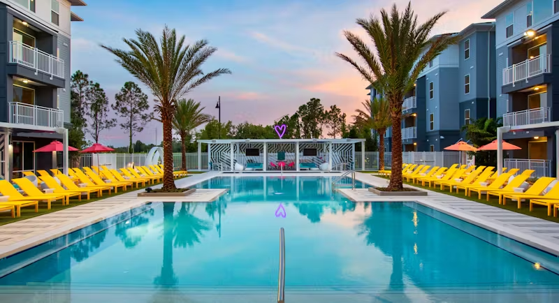 Hub on Campus Orlando provides a vibrant living community for students, complete with modern apartments and on-site amenities like a fitness center and resort-style pool, just minutes away from the University of Central Florida.
