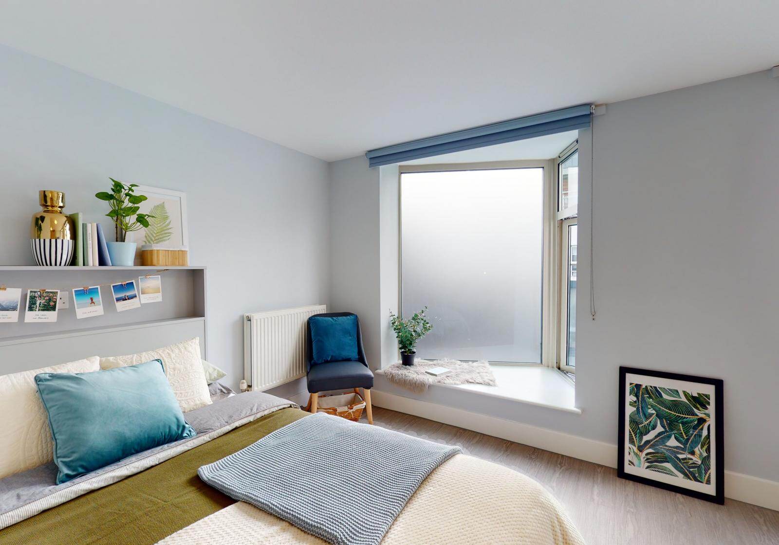 iQ Hoxton is a stylish student accommodation in London that offers various En-suites and Studios. The room types include Bronze Studio, Platinum Penthouse Plus, Gold En Suite Plus, and many others. For maximum privacy, our Studios offer a self-contained layout with a private bedroom, bathroom, and kitchen. To socialise with new friends, choose an En-suite, which includes a private bedroom and bathroom alongside a shared kitchen. Each room features a small double bed, a dedicated study area, ample storage space, and a private shower room. iQ Hoxton London covers all utility bills, including water, electricity, gas, heating, and internet, ensuring a hassle-free university life!