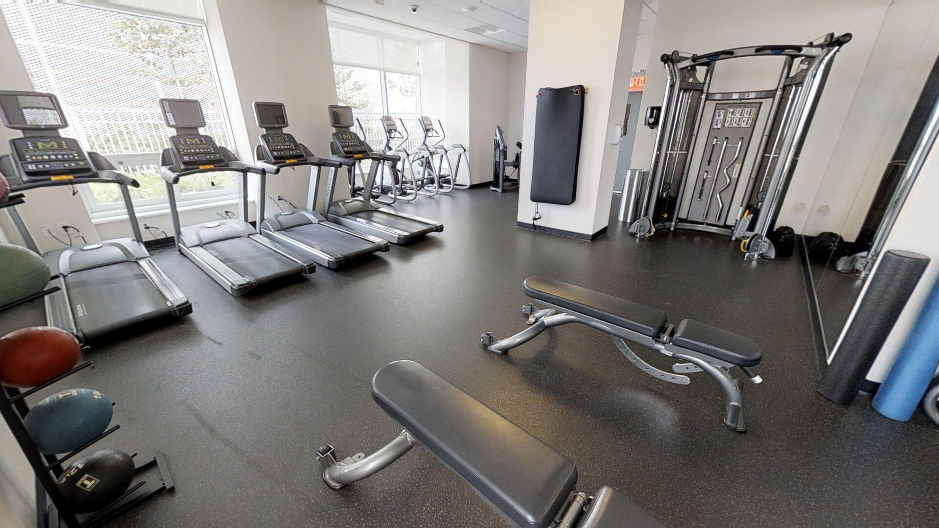 Laguna is the luxury apartments for rent in Jersey City. Laguna at Newport offers the room types including one-bedroom and two-bedroom, boasting perfect views of the Hudson River and Manhattan skyline. Each unit in Laguna apartments Jersey City features the central air conditioning, high speed Internet access, large windows, hardwood floors, in-unit washer and dryer. The open concept eat-in kitchen in Laguna at Newport is equipped with the dishwasher, refrigerator, microwave, stove, oven, range hood, cabinets, quartz countertops and stainless steel appliances. Not only that, the cozy bedroom in Laguna apartments Newport NJ contains a bed, windows, window coverings, closets, the lamps, a chair, hardwood floors and the carpet. Besides, there is a shower room, toilet, sink and the mirror in the tidy bathroom. At Laguna Jersey City NJ 07310, residents can also enjoy great social spaces and shared amenities, including the fitness center with gym, game room, children's playroom, lounge, courtyard, rooftop terrace, outdoor grilling areas, delivery alert system, 24-hour doorman, concierge, garage and much more. Also, Laguna is a pet-friendly apartments, welcoming your furry family members.