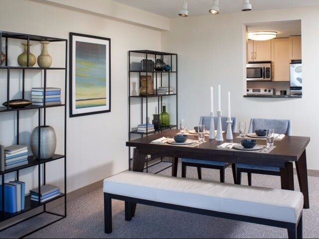 Neponset Landing Apartments is the upscale student housing in Boston. Neponset Landing Apartments offer the room types including one- and two-bedroom, featuring modern designs, luxury decorations, spacious layouts and 360-degree panoramic views of Neponset River, Boston skyline and Boston Harbor. Each unit in Neponset Landing Apartment contains air conditioning, heating, hardwood floors, in-unit washer and dryer. The kitchen is equipped with the dishwasher, refrigerator, range hood, microwave, stove, oven, cabinets and granite countertops. Not only that, the cozy bedroom is decorated with a bed, walk-in closets, large windows, window coverings, closets and the carpet. Also there is a shower, toilet, sink and the mirror in the tidy bathroom. At Neponset Landing Apartments Quincy, residents can also enjoy nice social spaces and shared amenities, including the fitness center with the gym, pool table, clubhouse, movie theater, business center, lounge, bike storage, elevator, maintenance on site, concierge and the pet-friendly service including the pet care service. Attractively, the heating fee is included in the Neponset Landing Apartments rentals.