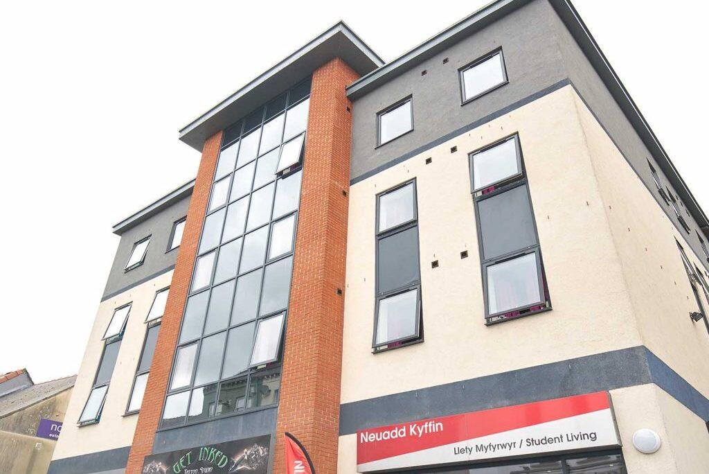 Neuadd Kyffin is a modern student accommodation in Bangor that is situated in a perfect place, less than a 10-minute walk to everything you need. Located at 110A High Street, LL57 1NZ, Neuadd Kyffin Bangor is a mere 7-minute walk from Bangor University, making it a perfect choice for students in this city. Essential services and amenities are plentiful in the surrounding area, including supermarkets, banks, cafes, and restaurants. A short 5-minute walk also brings you to the bustling High Street, and an 8-minute walk will lead you to Bangor train station. Neuadd Kyffin offers a wide range of stylish studios and fully furnished en-suite rooms, as well as awesome social spaces like a large flat-screen TV and outdoor area. Come to experience the most convenient student life at Neuadd Kyffin in Bangor!
