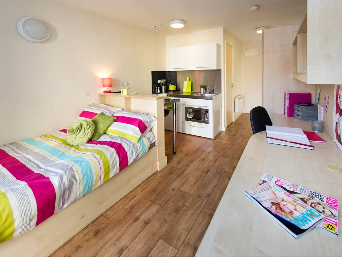 Optima provides cheap student accommodation in Loughborough at 4 Greenclose Lane, LE11 5AS, offering gorgeous student housing. Perfect for postgraduate and first-year undergraduate students alike, its studios meet all your needs. At the same time, Optima Loughborough is located just a 12-minute walk from Loughborough College and a 16-minute walk from Loughborough University. You can get access to the high-speed Wi-Fi, bike storage, and on-site laundry room that provides comfort, convenience and community involvement at an affordable price. This living experience offered by Optima in Loughborough stands out!