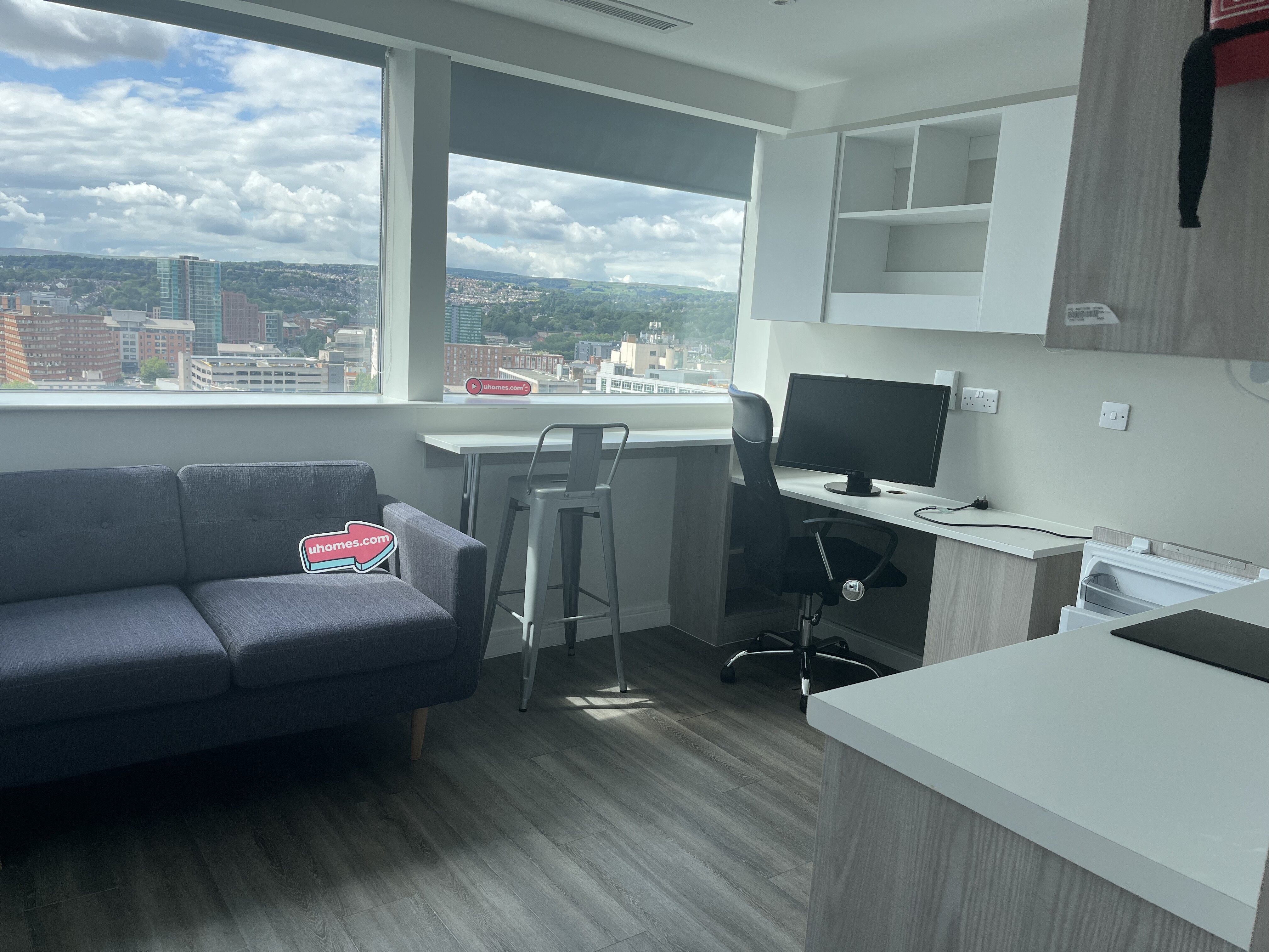 Redvers Tower Sheffield is home to 227 students, offering studios, en-suites, non-en-suites, 1-bed and 2-bed apartments. Each room features different floor plans and prices, so you can choose the right student room based on your needs and budget. All Redvers Tower accommodations are equipped with an en-suite bathroom, a double bed, a study desk with a chair and storage space. En-suites, non ensuites, and 2-bedroom apartments have a communal kitchen for students to share living with other roommates while enjoying personal space in a private bedroom. Homes for Students Redvers Tower's studios and one-bedroom apartments are the perfect options for those who want complete privacy with their own kitchen space. If you would like to live with your friend or partner, choose the available Twodio room for dual occupancy.