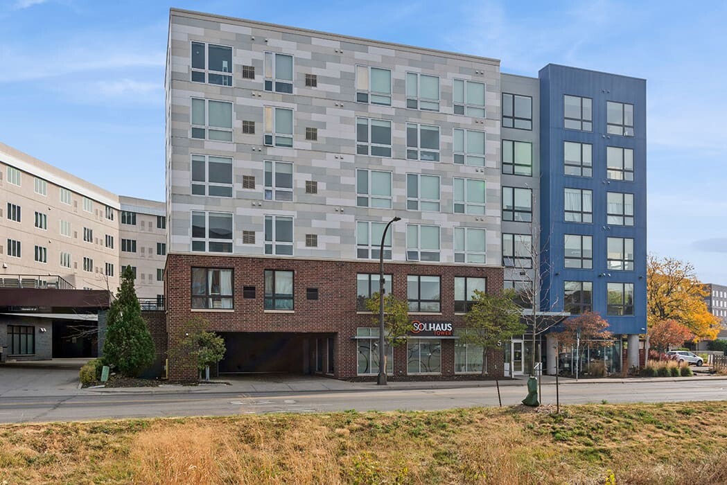 Welcome to Solhaus Tower, your boutique off-campus student housing community steps from the University of Minnesota Twin Cities. We offer modern studio, 1-, and 2-bedroom floorplans in the heart of Prospect Park, Minneapolis. Our upscale apartments feature sleek kitchens with stainless steel appliances, in-home washers and dryers, and floor-to-ceiling windows with views of the best location in town. You can’t beat our location just steps from the UMN Medical School, Huntington Bank Stadium, and nearby restaurants for quick bites. When you’re not relaxing at home, take advantage of our 24-hour fitness center, study lounge, or outdoor patio with grilling stations. Whether you’re looking to live alone or with friends, we have the perfect fit for you.