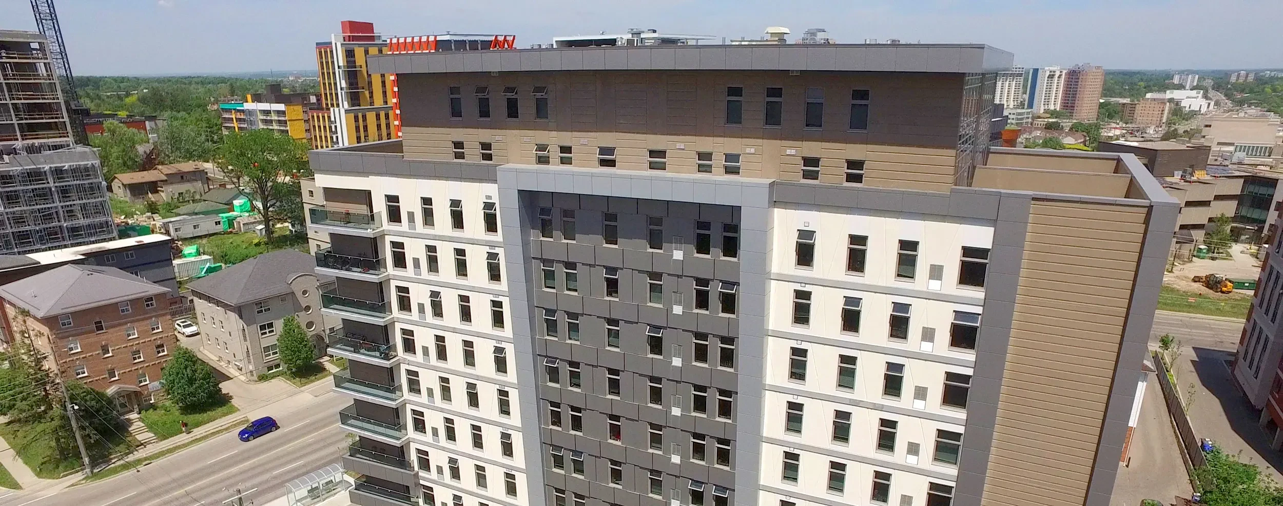 So close to Wilfrid Laurier University, you can see the campus, Spring Village is perfect for student living. Located directly in front of GRT bus stop, each suite comes fully furnished, with double beds and a desk for studying. Our student housing suites include, heat, water, unlimited high speed internet and comes furnished with appliances.
