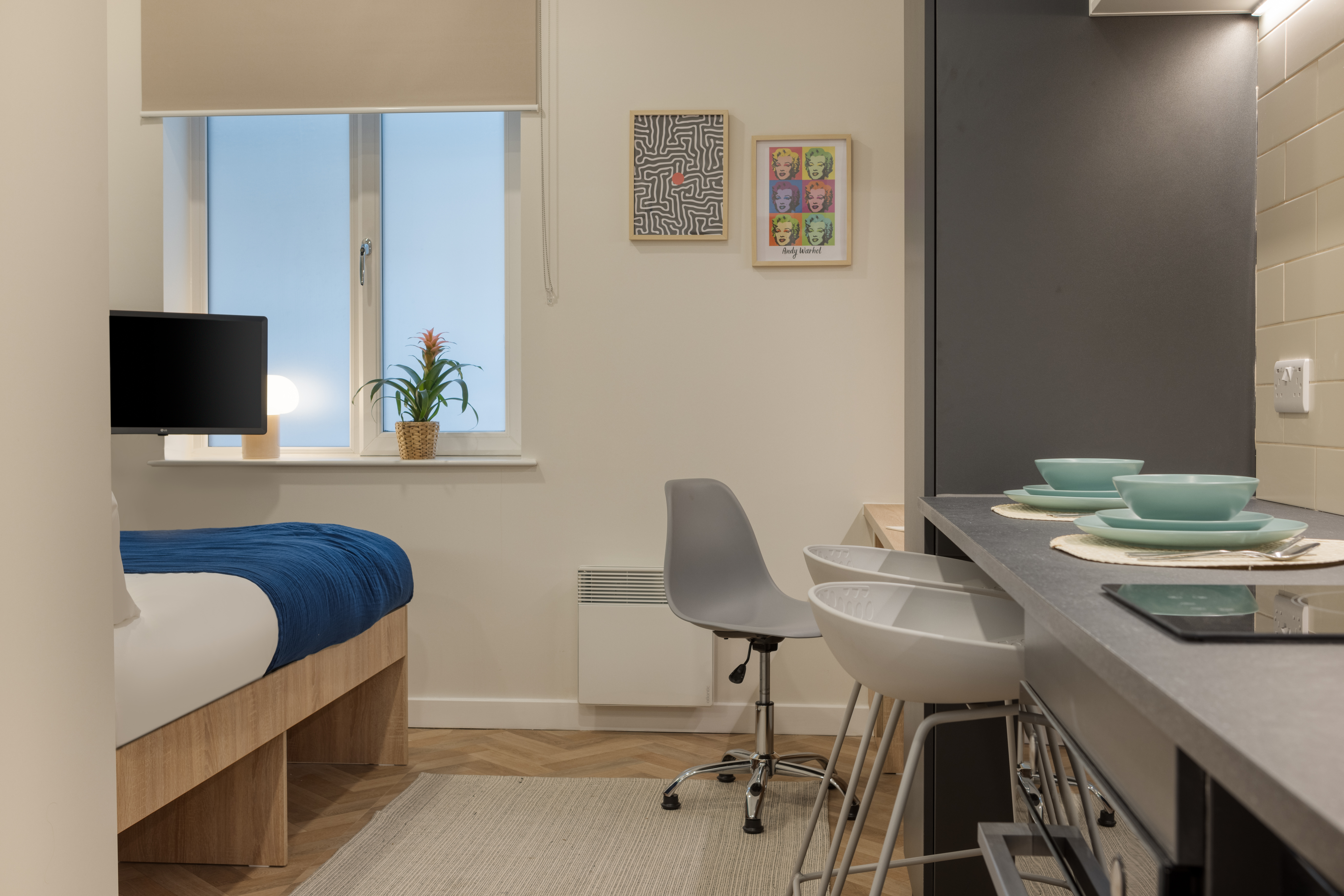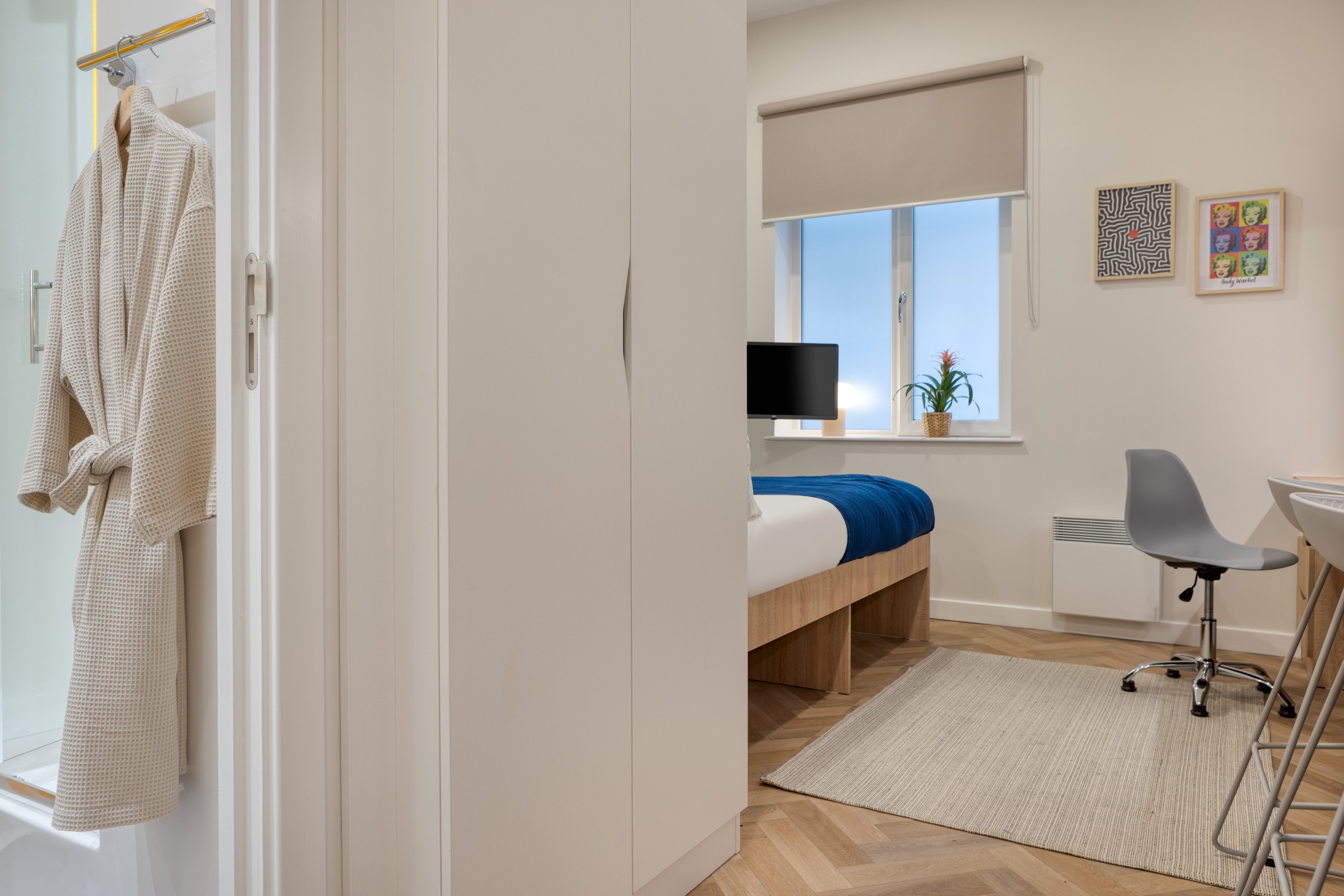 Yugo St. Crispin's House - Norwich Student Accommodation combines value for money, security and convenience with a wealth of social resources, making student life hassle-free. Each room has a ¾ double bed, a large study desk and chair, heaps of storage, and a private ensuite, ensuring ultimate privacy and relaxation.