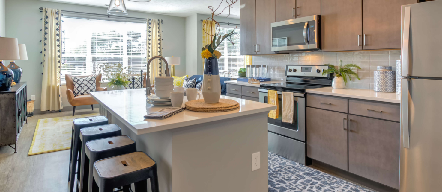 Steel House features luxury apartments for rent in the heart of one of Columbus, Ohio’s most vibrant communities, Grandview. We are close to a plethora of dining, shopping, and entertainment options just around the corner. Our 1 and 2-bedroom suites feature contemporary open concept interior design, a gourmet kitchen with center island, granite countertops, slate painted maple cabinetry, stainless steel appliances, subway tile backsplash, built-in microwave, reservoir-style sink basin, washer and dryer, and oversized walk-in closets. Our residents come home to unrivaled amenities including a heated resort-style pool, 24/7 fitness center, outdoor kitchen with gas grill and prep area, and a top-notch resident life social scene. Steel House has an exclusive resident social scene, with monthly events like wine tastings, pool parties, tailgates and happy hours, which are a great way to meet new people. If you’re looking for urban adventure with small-town charm, then Steel House in Grandview is the perfect home for you. Take our virtual tour or stop in today – we’d love to meet you!