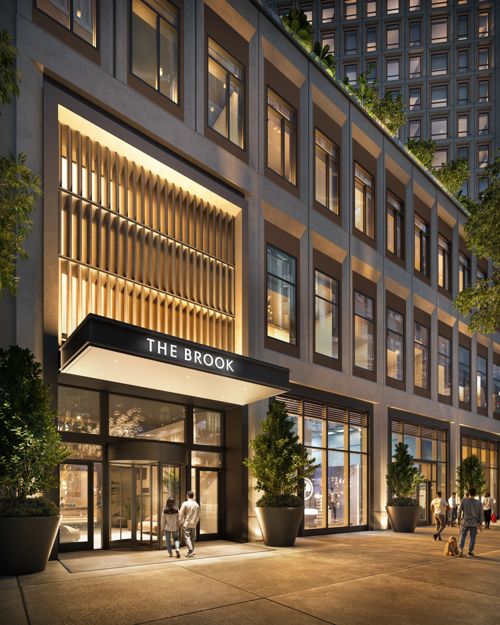 The Brook is a sleek, mid-rise residential building nestled in Downtown Brooklyn. It offers a variety of apartment layouts from studios to two-bedrooms, all featuring contemporary finishes, hardwood-inspired floors, and oversized windows. Kitchens are outfitted with stainless steel appliances and stone countertops. Residents enjoy upscale amenities such as a rooftop lounge with Manhattan skyline views, a fitness center, a residents’ lounge, co-working spaces, and secure package lockers. Located directly above the bustling Fulton Street retail corridor and just steps from multiple subway lines (A/C/F/B/D/N/R/2/3/4/5), this building offers unparalleled convenience for urban dwellers.