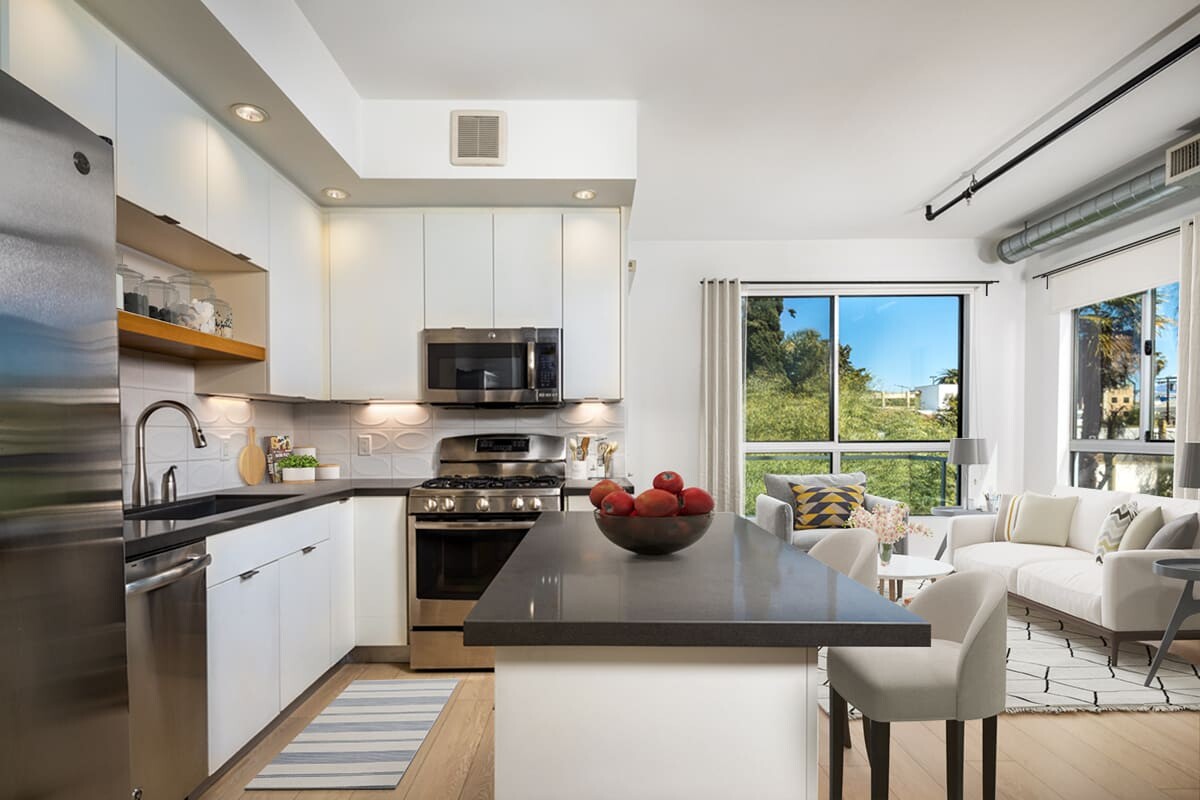 LC Apartments is student housing in Los Angeles. Located on Hollywood's prestigious El Centro Avenue, this apartment building perfectly blends modern industrial style with classic Hollywood charm. From spacious studios to flexible two-bedroom units, all feature modern amenities such as air conditioners, lofty 9-10 ft ceilings, and full-size washers/dryers. For students attending universities like Musicians Institute (MI), Los Angeles City College, or American Film Institute, this not only shortens the commute but also brings you closer to the cultural heart of Los Angeles. Living at The LC means waking up to the pulse of Hollywood.
