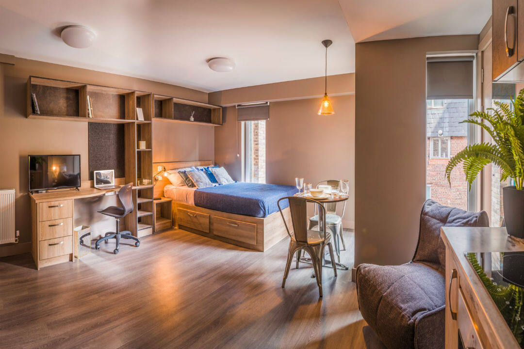 West Gate, nestled in the heart of Exeter, represents cutting-edge housing designed to offer a contemporary and luxurious living experience. This state-of-the-art facility features sleek and elegant interior decor, providing students with a selection of studio apartments, some of which come with charming balconies or expansive floor-to-ceiling windows. With a commitment to addressing diverse student needs, West Gate offers a range of room types to cater to individual preferences. These rooms are thoughtfully designed and meticulously equipped, with modern amenities such as en-suite bathrooms, well-appointed separate kitchens, USB charging sockets, ample storage, and comfortable furnishings. West Gate distinguishes itself by offering a private rooftop terrace, affording breathtaking views of the city skyline, and the option to reside in duplex flats, creating a thriving community for communal living.