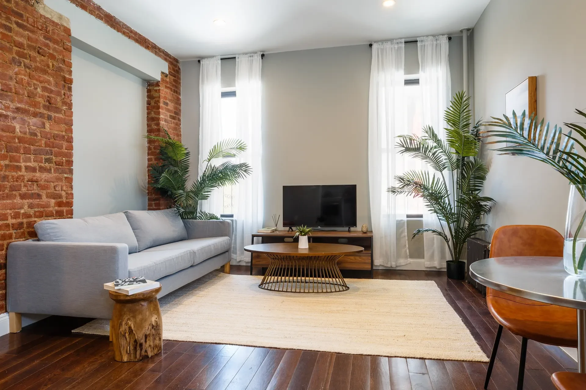 Other features of this apartment are: 32" Flat-Screen TV, oven, microwave, refrigerator, and dishwasher.
